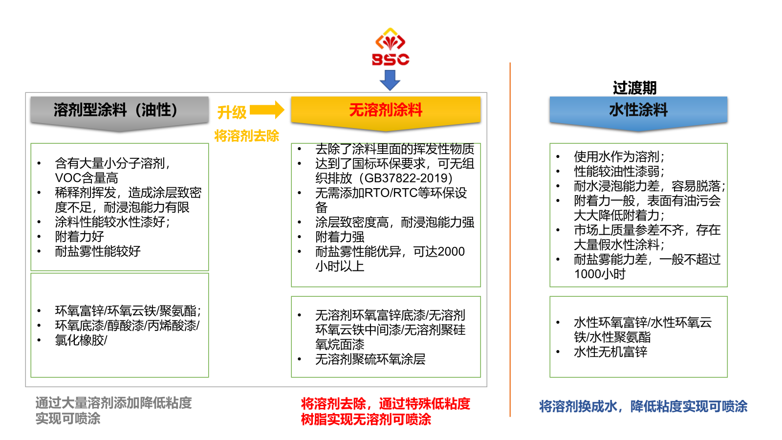 BSC提供的工业制造领域无溶剂解决方案是一种跨时代的新型涂料系统,是业内 首 次 实现了不含溶剂,低粘度,可有气喷涂,底面合一的制造业设备外涂装解决方案。本品采用特殊的硅氧烷树脂体系,不含溶剂,0级附着力,非易燃易爆品,通过5000小时中性盐雾测试,硬度>2H,常温,烘烤都可固化。单道膜厚从20μm到150μm不等。